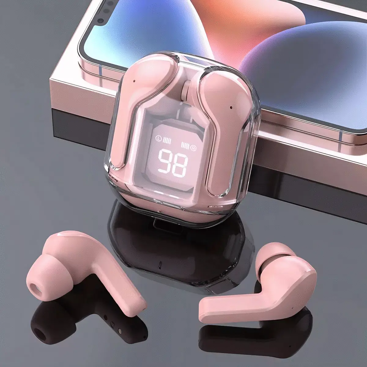 Olvidate de los cables y disfrutá de tu música con estilo. Estos auriculares combinan un diseño moderno en color pastel con una pantalla digital inteligente que te muestra el nivel de batería en tiempo real, para que nunca te quedes sin carga cuando más los necesitás.